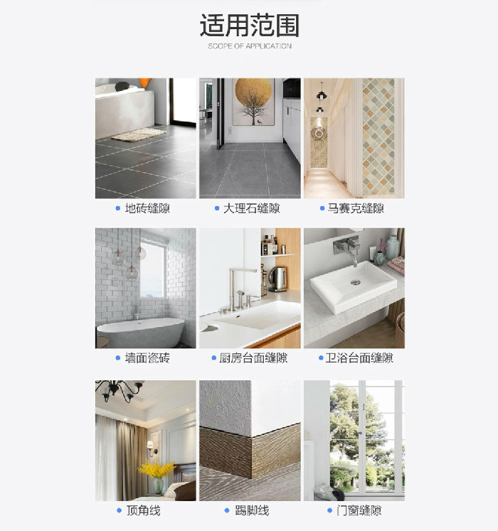 凱德力品牌倡導“親近自然,安全環保”的健康生活理念,專注“全屋無縫系統解決方案”,為不同的使用場合、不同的裝修風格提供新科技的美縫、收邊、填縫產品,全屋處理瓷磚縫隙及門套線、踢腳線、衣柜、窗臺、角線、潔具衛浴、墻紙墻布等處的各種縫隙與收邊,徹底解決裝修縫隙藏污納垢的困擾,顯著提高生活品質。